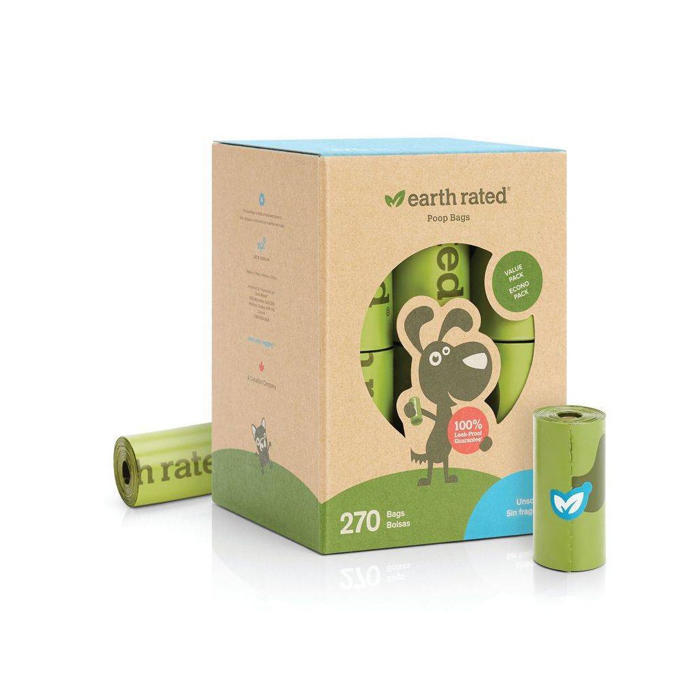 We've got dogs, and we know where your hands are going. We want them to stay safe, clean and poop-free which is why we guarantee our Earth Rated dog poop bags are 100percent leak-proof, extra thick and strong! Even though our bags are super tough, they’re still easy to use so you’re not fumbling around when it’s time for business. When you do head out with your pup, we rmend matching our refill rolls with our Earth Rated leash dispenser so they're always close by when you need them the most. This box of 270 dog waste bags contains 18 rolls of 15 unscented dog poop bags, and each one measures 9 x 13 inches. They're big enough to fully cover your hand and sleeve during pickup with plenty of room left over to tie a secure knot in the bag when you're finished. The extra details are important to us, which is why all of our packaging and inner roll cores are made with recycled materials. At Earth Rated we love dogs and love what we do. We hope you'll try out our poop bags and let us know if you have any feedback! Size: 270ct.