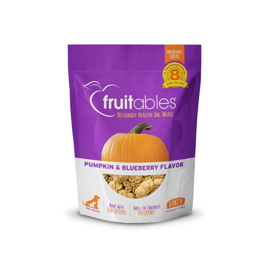 The power of SuperFoods meets the taste that dogs crave. Fruitables Pumpkin and Blueberry Baked treats are a low-calorie dog treat formulated with CalorieSmart nutrition. The crunchy texture and irresistible blueberry muffin flavor of Fruitables Pumpkin and Blueberry Baked treats can help with training as a reward to reinforce good behavior or serve as a healthy and low calorie healthy every day treat.