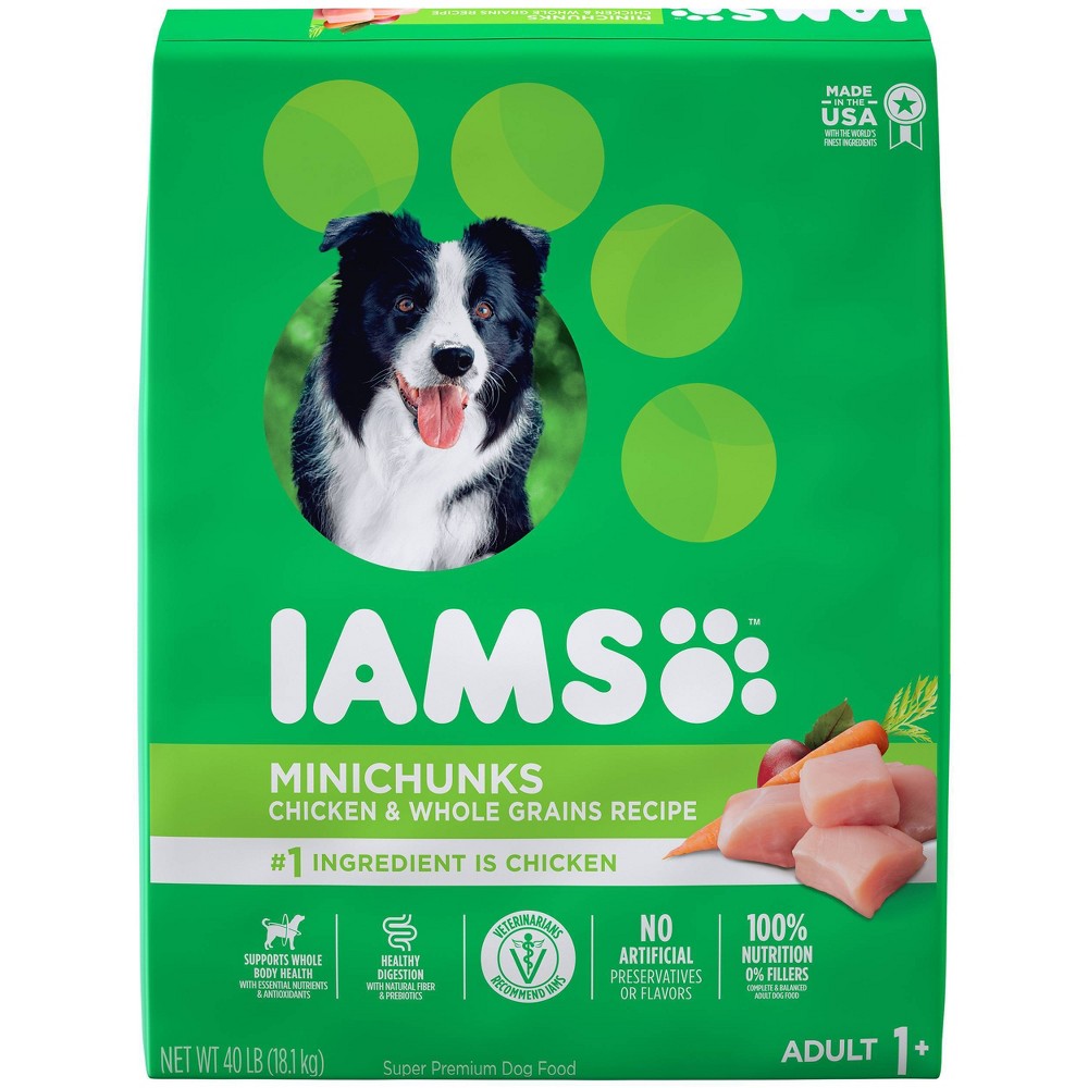 Iams Proactive Health : Iams Proactive Health Adult Minichunks 7 LB is designed for your active dog. This multi-tasking dog food is formulated with essential nutrients to nourish the heart, prebiotics to promote healthy digestion and immune system, Omega-6s to promote healthy skin and coat and L-carnitine to maintain a healthy metabolism. Chicken is the first ingredients, no fillers. Size: 40 lbs.