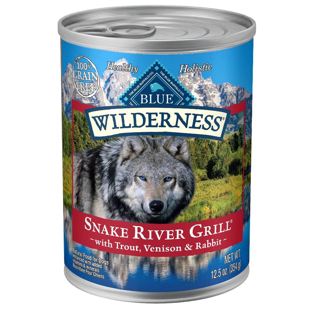 Blue Buffalo Wilderness : Inspired by the Snake River and surrounding lands, BLUE Wilderness Snake River Grill wet dog food is made to feed your dog’s most primal instincts. With a blend of trout, venison and rabbit, plus fruits and vegetables, this grain free recipe is made with the finest natural ingredients enhanced with vitamins and minerals. Formulated for the health and well-being of your adult dog, this wet food features high-quality protein sources to help supply the energy he needs while promoting healthy muscle growth.