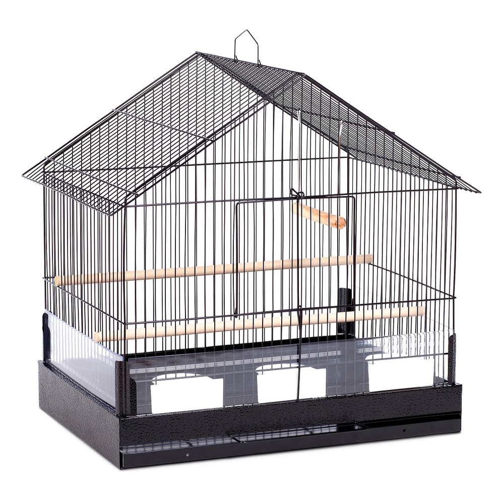 Prevue Pet Products Cockatiel House-Style : Your bird will have plenty of room to maneuver in this black house-style bird cage with single front door. The sturdy wire and steel cage features three food/water cups and a pull-out bottom drawer for quick and easy cleaning.