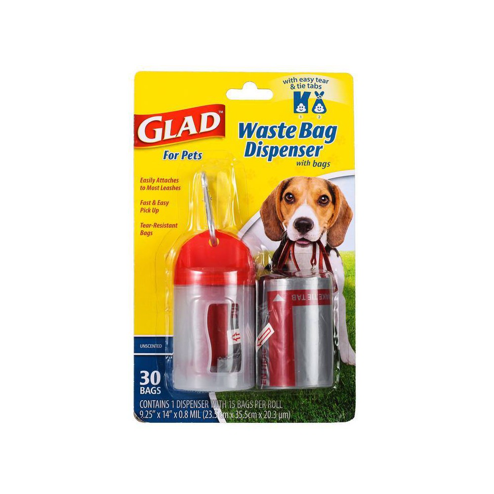 Glad? for Pets waste bags, dispensers, and training pads are dependable and specially designed for easy clean up! Built with Glad? level strength, everyday training and clean up accessories bring innovation to each stage of your dog's life, from training pads using activated carbon technology, to daily waste bags with dispensers. With Glad? for Pets Extra Large Tropical Breeze Scented Dog Waste Bags and Dispenser, you?ll never be left in a lurch without a poop pick up solution when out with your pet! These dog poop bags come with a handy disposable dispenser with an elastic loop. You won?t have to worry about leaving home without your trusty dog waste bags, as the loop attaches to most leashes. Cleaning up after your dog may not be fun, but Glad? for Pets makes it easy to be a responsible owner. The doggie bags for poop help you clean up quickly after Fido does his business. Pick it up and toss it in the trash. It?s that easy! Whether you've had a pet for a while, or are just meeting your new dog for the first time, these dog poop bags and dispenser are must have dog supplies. These poop bags for dogs are not strictly for outdoor use, they?re also perfect for inside your home for your other animals that may leave an unwelcome gift or two for you on your floor or furniture. They're handy in the car, camping, or anywhere you take your pet. These poop bags are made from heavy duty material for ultimate holding power and sanitary poop pickup. Each waste bag for dogs measures 7.7 by 5.9 by 1.8 inches. Using these waste bags is as simple as can be! 1. Take the Glad waste bag and pull it over your hand like a glove. 2. Pick up waste with your bagged hand. With your other hand, grasp open end of the bag and pull it inside out. The waste will now be inside the bag. 3. Gently tie and knot the end until completely closed. Dispose of safely. SAFETY WARNING: To avoid danger of suffocation, keep all plastic bags away from babies, children and pets. Do not use plastic bags in crates or carriers.